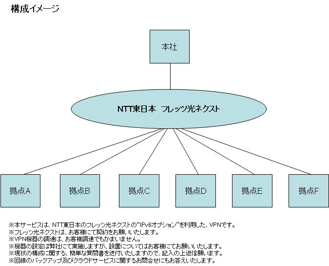 弊社ではそんなお客様の声にお応えするため、閉域網(NTTの地域IP網)で且つIPV6+暗号化技術を利用した